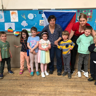 V mladší školní třídě jsme pilně opakovali, četli a psali. Zopakovali jsme českou abecedu pomocí obrázkového domina a připomněli typicky česká písmenka. Přidali jsme české dvojhlásky. Navázali jsme na téma zdravých zoubků a přidali letní téma - ovoce, zelenina a práce na zahradě. Písmenko Ř reprezentovala řeřicha, kterou jsme zaseli do vaty v Petriho miskách. Mluvili jsme také o včelách a ke Dnu dětí jsme si domů odnesli pár céček na oslavu písmenka C. S některými dětmi jsme se rozloučili malým dárkem, protože na naší poslední hodině nebudou. Děti byly skvělé, za úžasnou práci děkuje Radka, Jana a Markus.